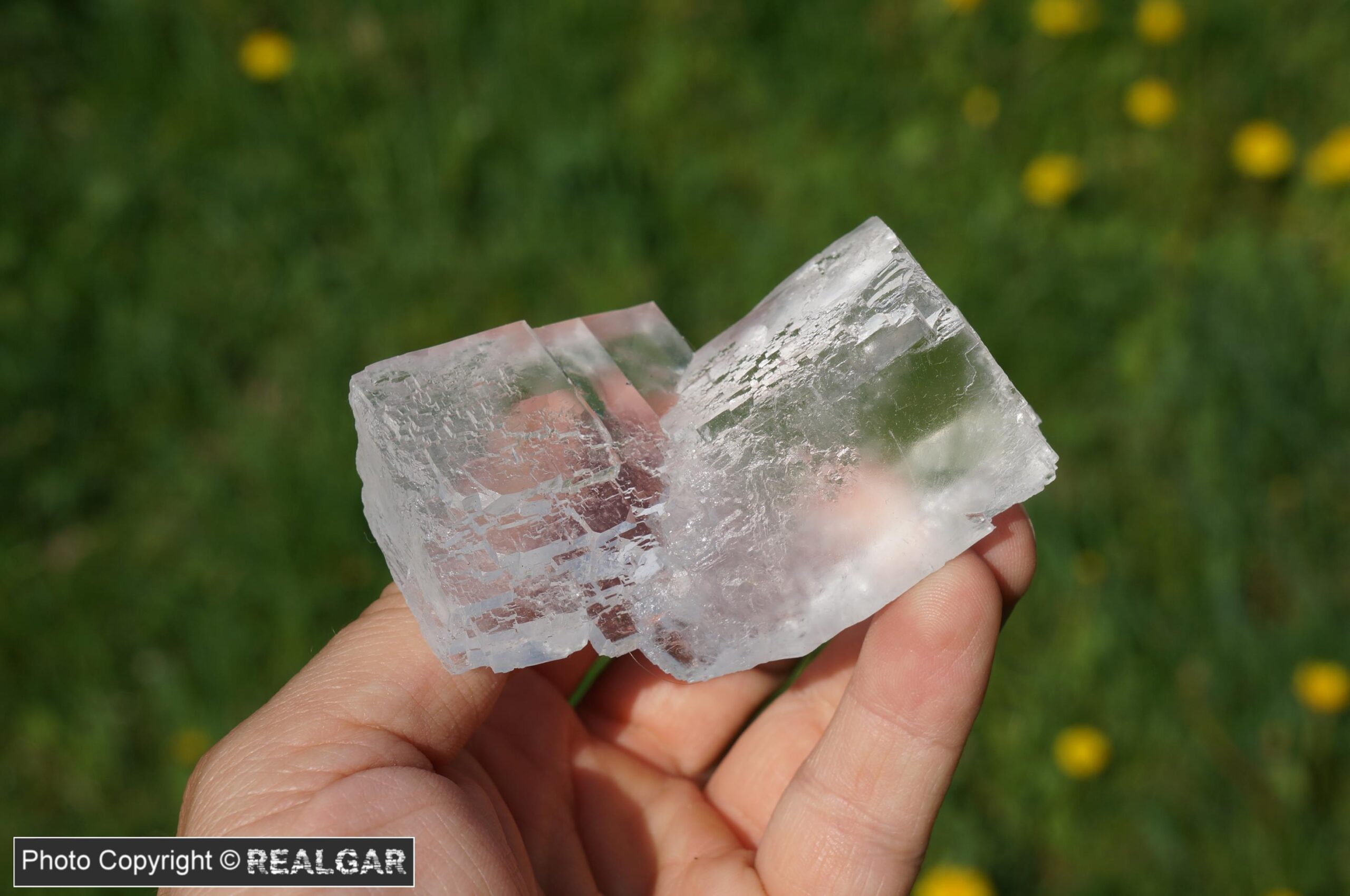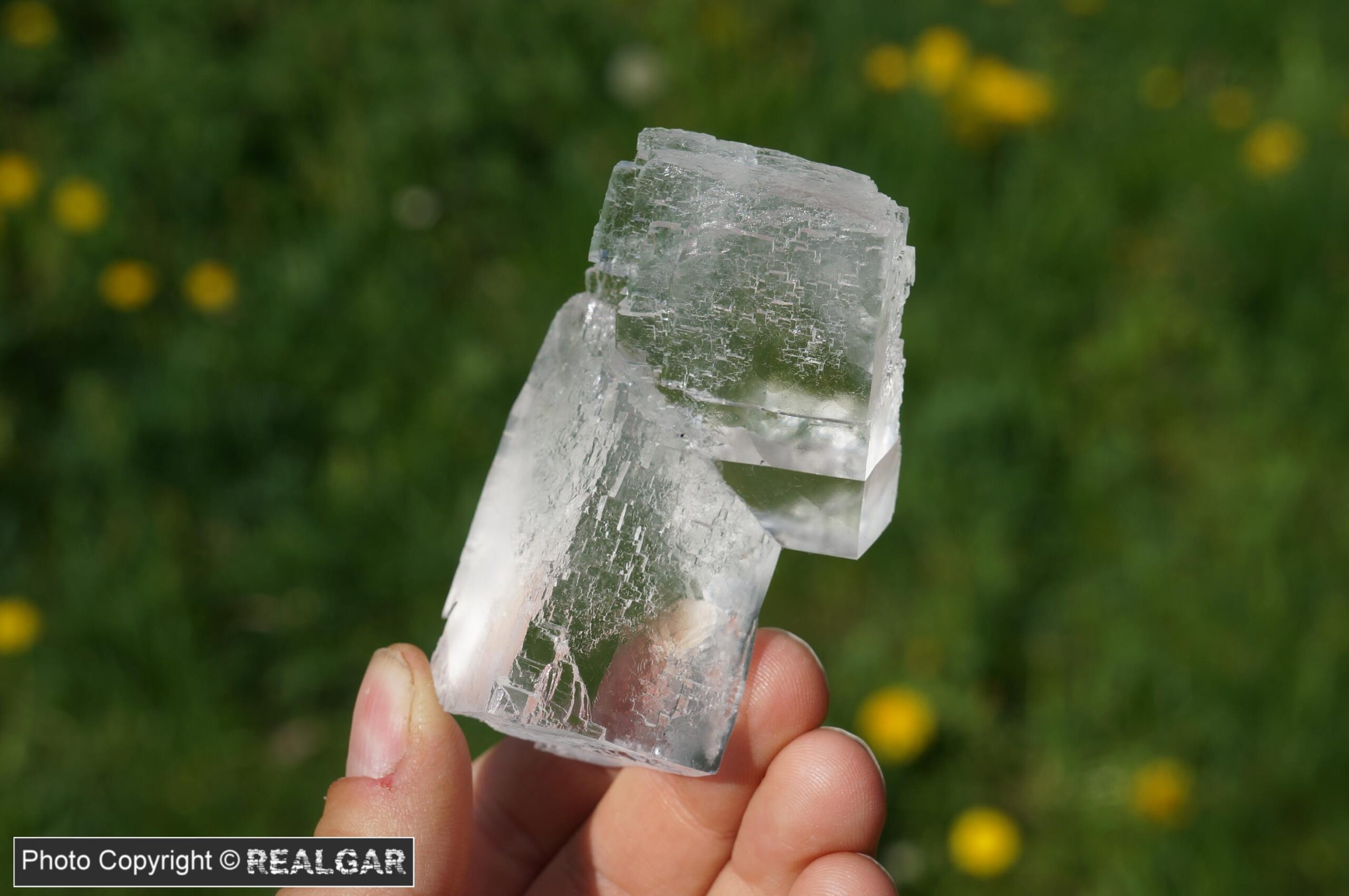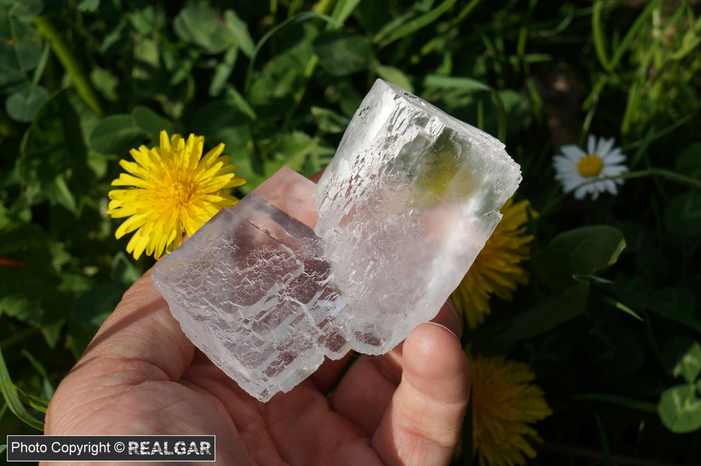 Kryształy halitu, chlorku sodu, czyli minerału znanego z każdej kuchni. Dwa, połączone ze sobą idiomorficzne kryształy. Halit jak halit, ale bardzo estetyczny.