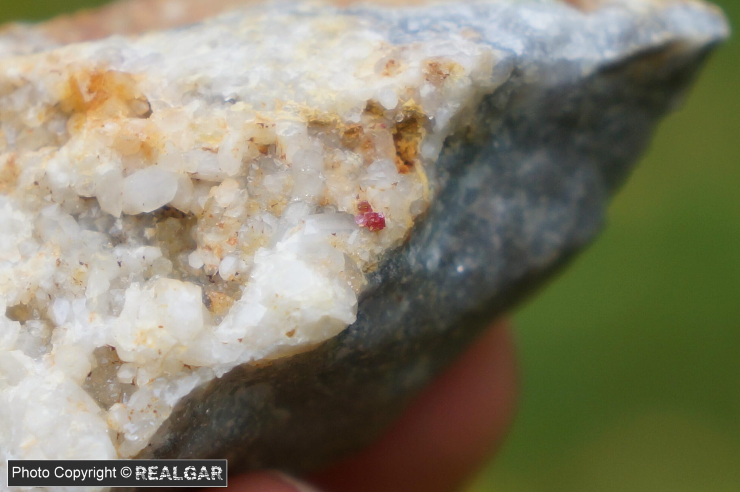 Cynober to rzadki siarczek rtęci o charakterystycznej czerwonej barwie kryształów. Te które są dostępne na rynku, najczęściej pochodzą z odległych dla nas lokalizacji (np. w Chinach), więc nic dziwnego, że polskie okazy, nawet tak drobne jak ten na zdjęciu (2 mm), budzą sensację. W roku 2022 pojawiły się na facebookowych grupach pierwsze informacje o znalezieniu w Wiśniówce koło Kielc niewielkich kryształów cynobru w obrębie kwarcytów. Jak wiadomo jest to lokalizacja znana z waryscytów i wavellitów, więc tym bardziej cieszy, że mineralizacja nie kończy się tutaj tylko na fosforanach.