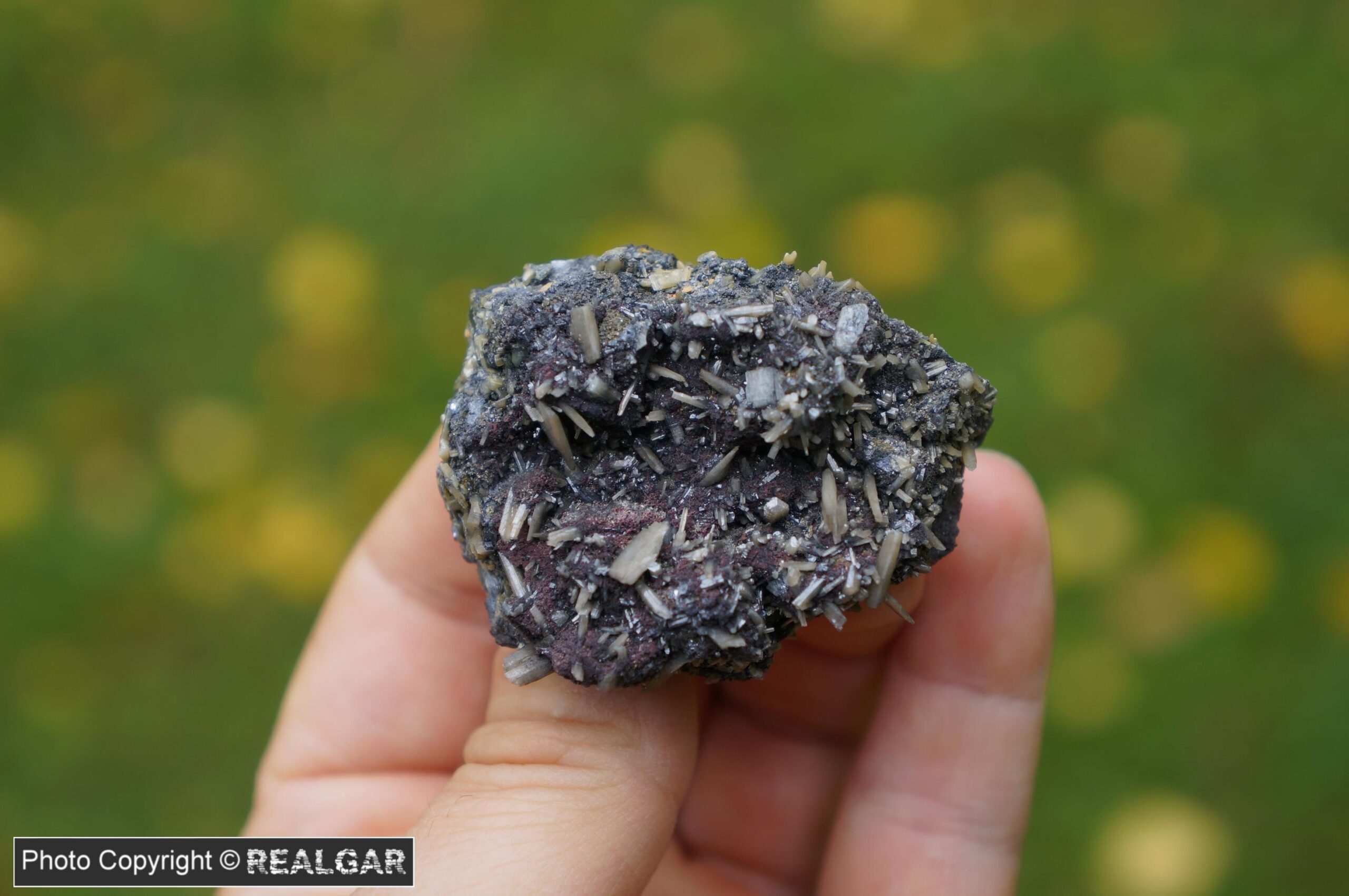 Możliwe, że kojarzycie amesyt z licznych, bardzo atrakcyjnych zdjęć na mindacie. Ten rzadki minerał z grupy serpentynitu tworzy słupkowe pseudoheksagonalne kryształy, w jednej z postaci wyglądające jak rozsiane na powierzchni skały gwiazdki. Bądźmy szczerzy, w tym wypadku nie ma co wspominać o wykształceniu, a sam okaz należy do tych „tak brzydkich, że aż pięknych”. Nie mniej amesyt z polskiej lokalizacji to must have w kolekcji, tym bardziej, że to okaz Ex coll. K. Łobos. PS. nie mylić z ametystem 🙂