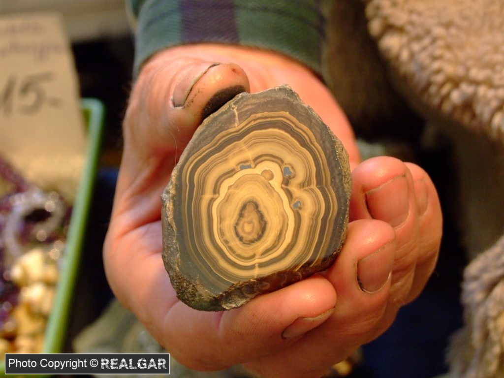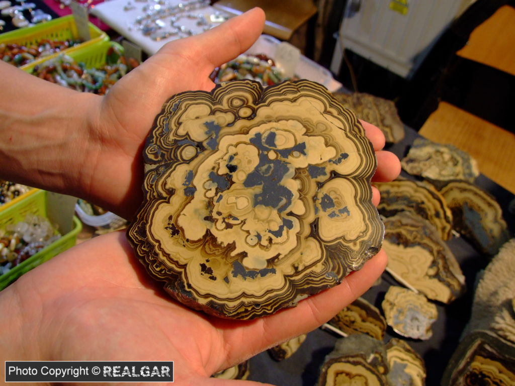 Parageneza sfalerytu i wurcytu (odmiany polimorficzne ZnS) oraz w mniejszych ilościach galeny i sfalerytu, tworząca charakterystyczne warstwowane nagromadzenia.